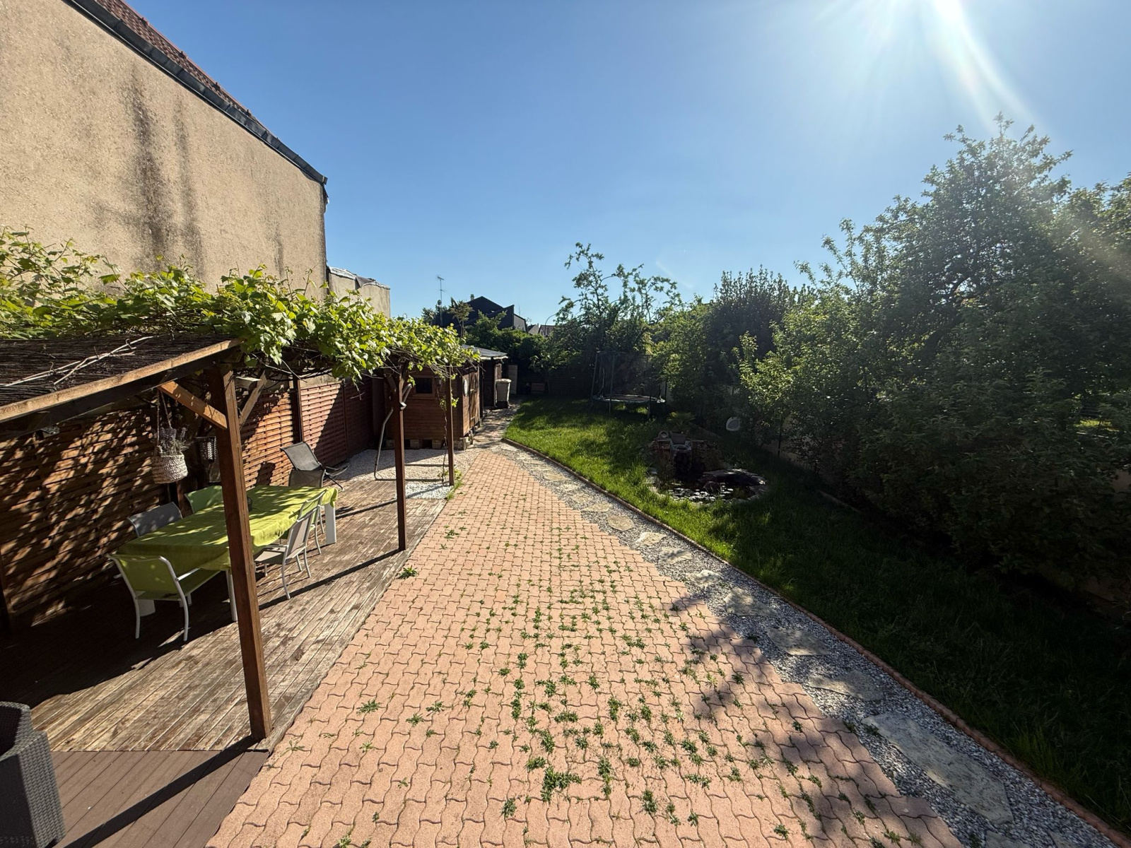 Au rez-de-chaussée surélevé, vous découvrirez un double séjour traversant et lumineux, offrant un bel espace de vie, une cuisine indépendante et spacieuse, ainsi qu'une véranda de 30 m² avec terrasse, donnant sur un magnifique jardin sans vis-à-vis. Une chambre ainsi qu’une salle d’eau avec W.C complètent ce niveau.