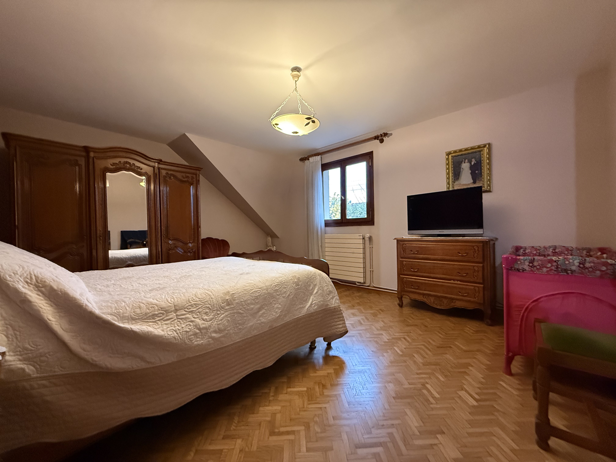 À l’étage, vous retrouverez un palier desservant trois belles chambres ainsi qu’une salle de bain.