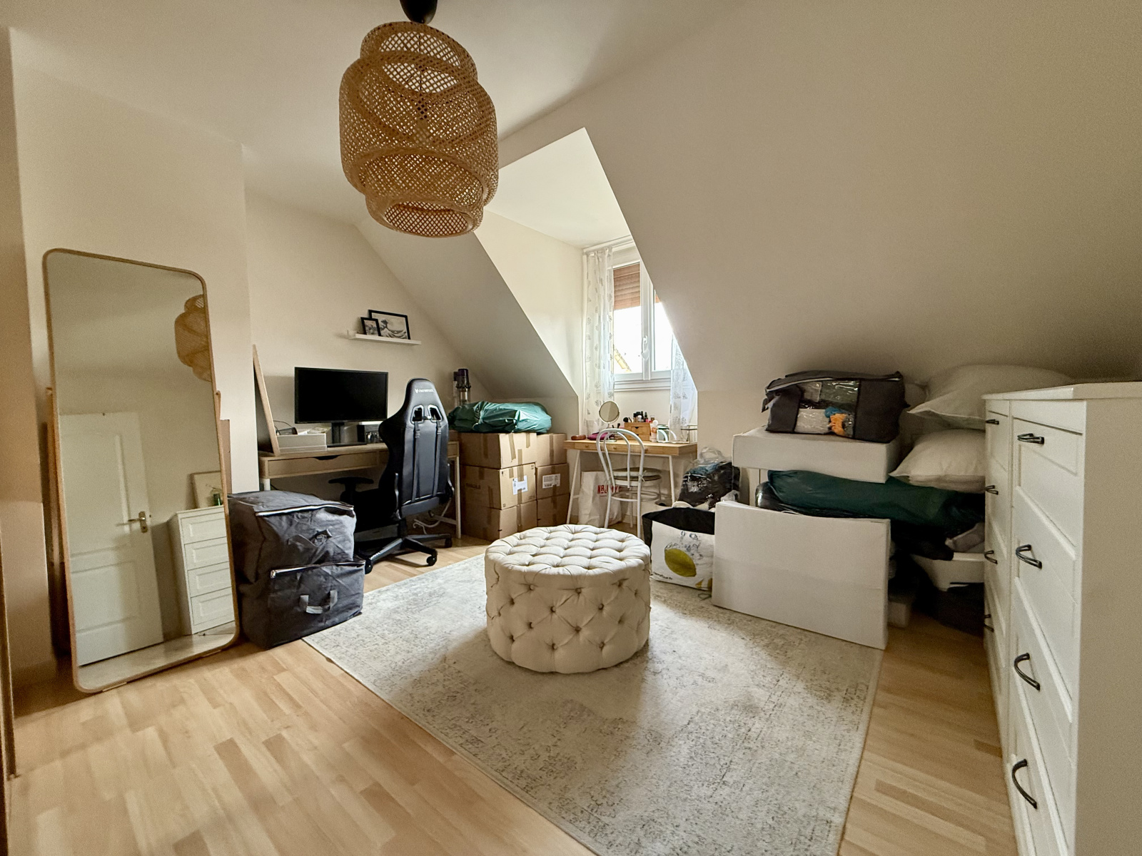 Au rez-de-chaussée, vous trouverez une entrée spacieuse, un double séjour traversant baigné de lumière, avec une cheminée et un accès direct à la terrasse et au jardin. La cuisine indépendante est entièrement aménagée et équipée. Vous bénéficierez également de toilettes séparées et d’un garage.