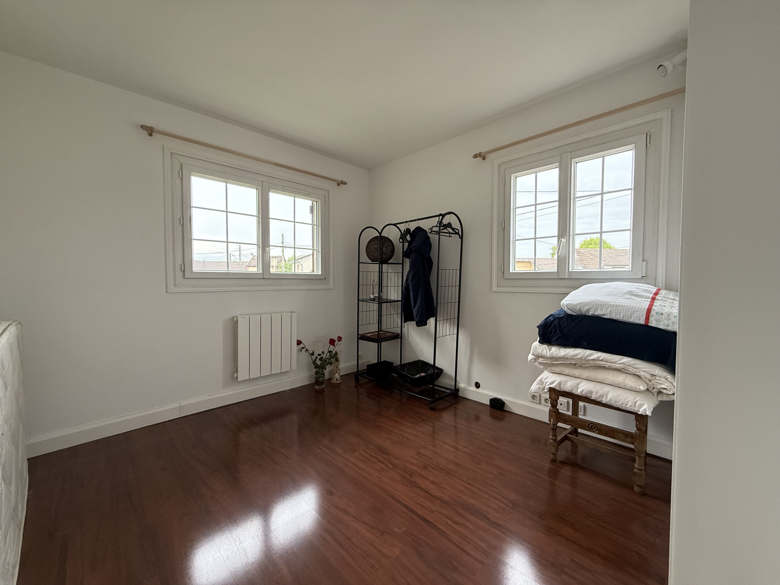 À l’étage, quatre belles chambres, un dressing et une salle de bain avec double vasque et WC. Les combles sont également aménageables.