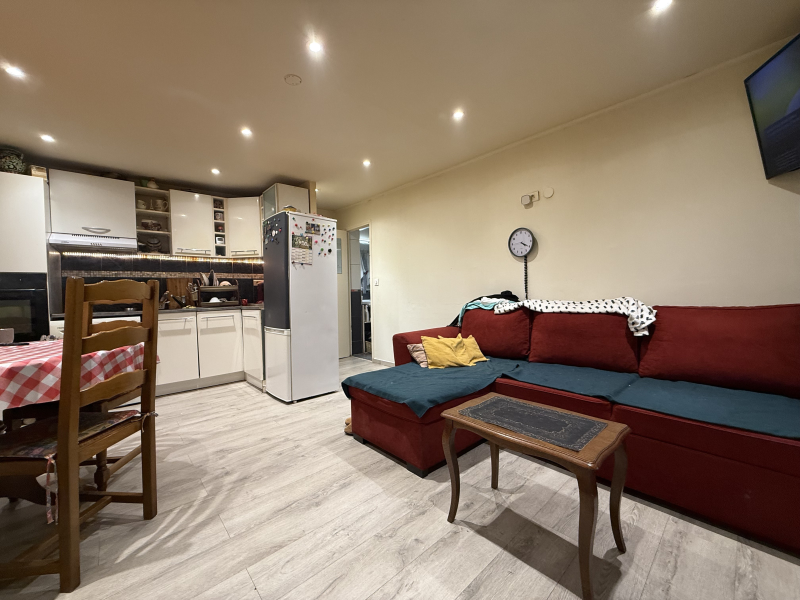 D'une superficie de 93 m² habitable et d'un accès pour plusieurs véhicules, cette maison offre de nombreuses possibilités d'aménagement. Actuellement elle est composé de : séjour, salle à manger, 2 cuisines, 3 chambres et 3 salles d'eau.